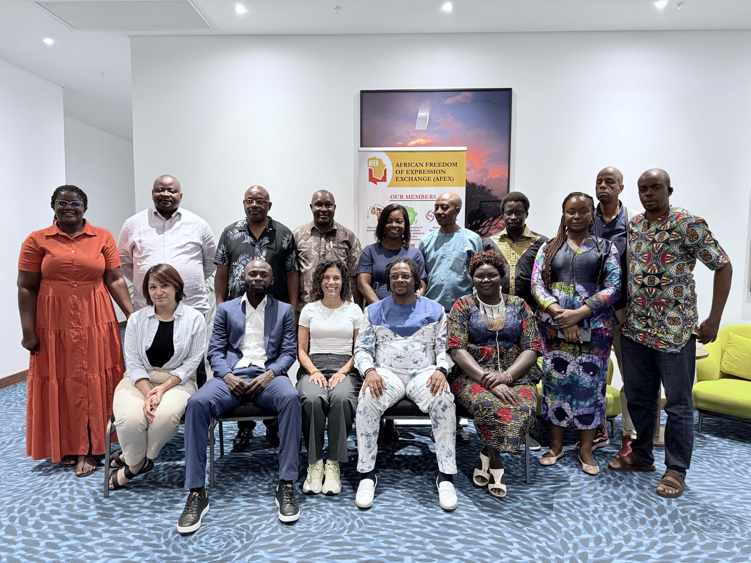 Organized by the Media Foundation for West Africa (MFWA), host of the AFEX Secretariat, and chaired by Paul-Joel Kamtchang, Executive Director of ADISI-Cameroon and Chairperson of the AFEX Steering Committee, the meeting brought together delegates from all 14 member organisations across West, East, Central, and Southern Africa. Also present were representatives from IFEX, including Executive Director Rachael Kay, Advocacy Coordinator Farah Bogani, and Africa Regional Editor Reyhana Masters.